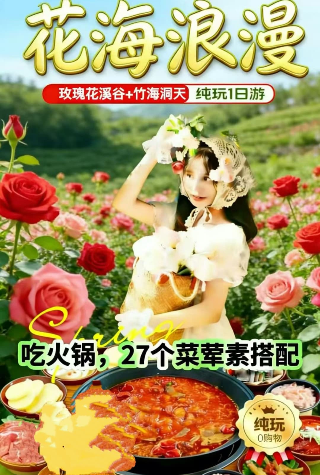 【立战国旅】2026年4月12日。玫瑰花溪谷+竹海洞天一日游(纯玩不进店)